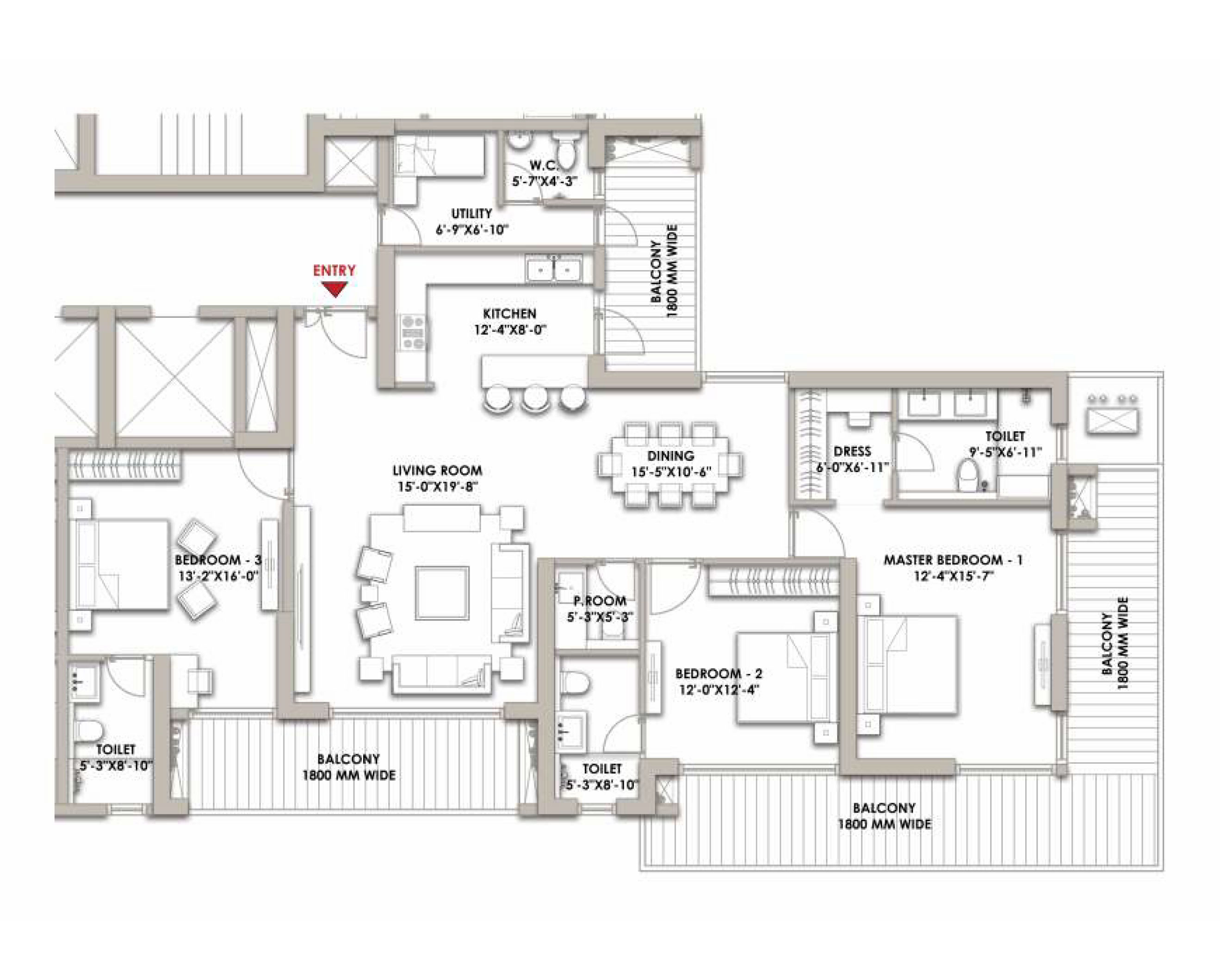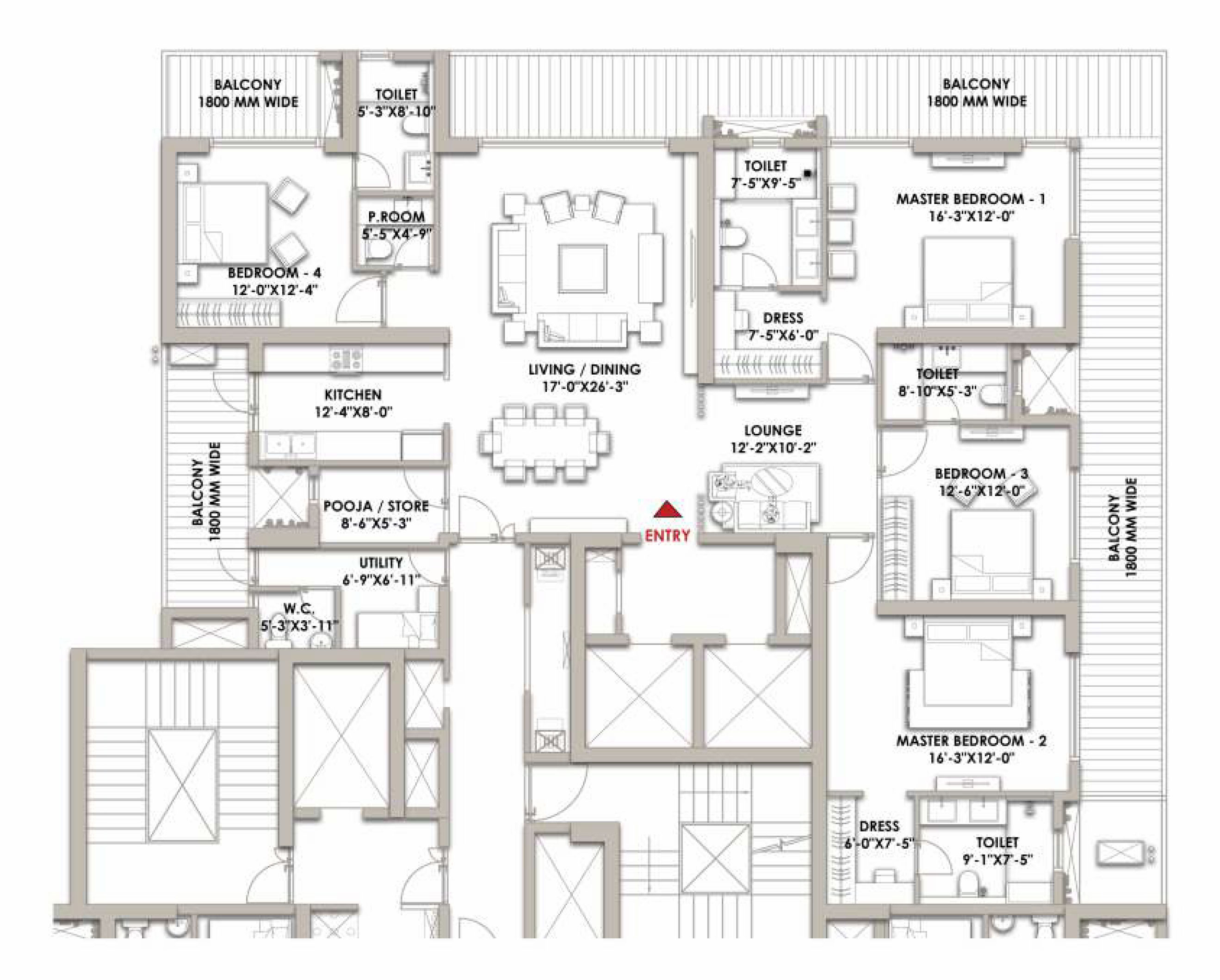 Discover spacious and beautifully designed 3 and 4.5 BHK 3 side open Apartments. Each residence is thoughtfully planned to offer generous interiors, abundant natural light, and breathtaking panoramic views — giving you not just a home, but a lifestyle that truly soars.